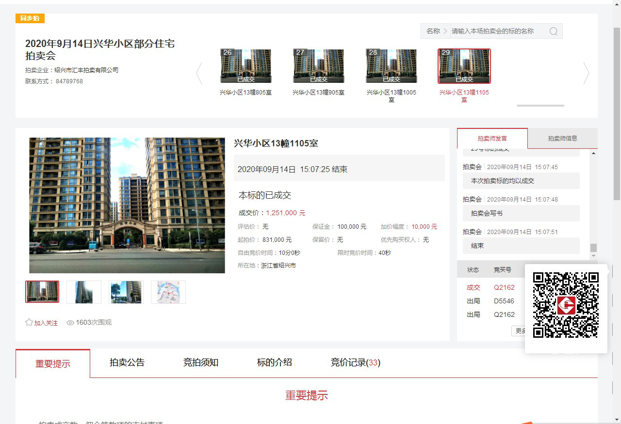 為做好新冠疫情防控工作,應交易中心要求,9月14日上午8時,集團首次采用網(wǎng)上拍賣方式,通過中國拍賣行業(yè)協(xié)會中拍平臺,成功拍賣興華小區(qū)29套住宅。