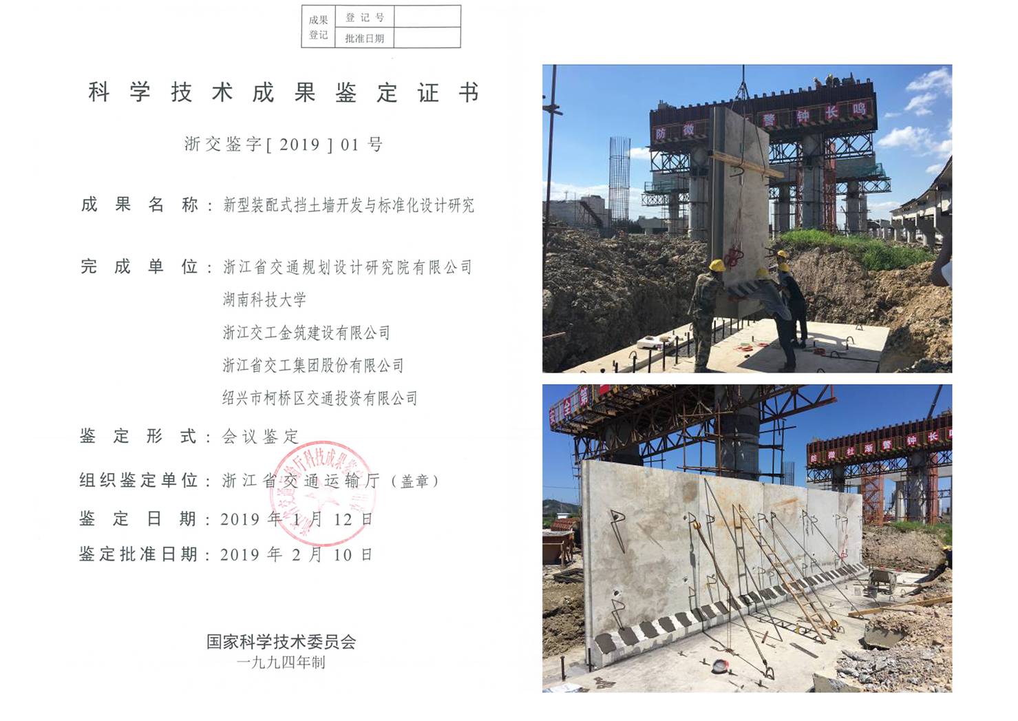 《新型裝配式擋土墻開發(fā)與標準化設計研究》課題通過省交通運輸廳鑒定