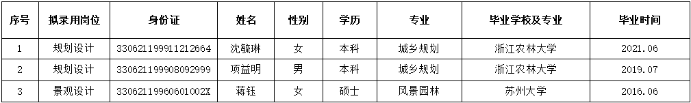 紹興越州都市規(guī)劃設(shè)計(jì)院有限公司擬錄用人員公示