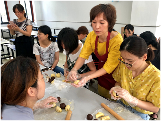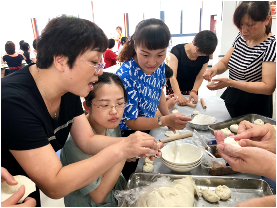 本次活動共持續(xù)了一個半小時,在兩位面點老師的指導下,參加活動的女職工們現(xiàn)場體驗了制作包子和蛋黃酥的過程。大家躍躍欲試,紛紛按照制作流程“大展身手”。現(xiàn)場氣氛熱烈,歡聲笑語不斷,處處流露著節(jié)日的喜悅。